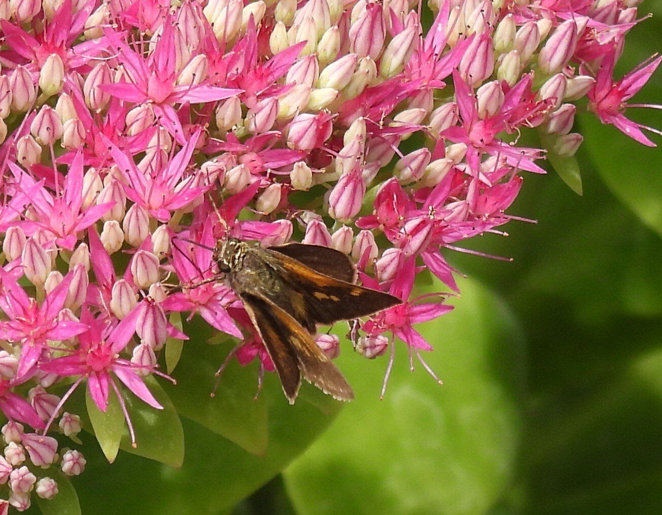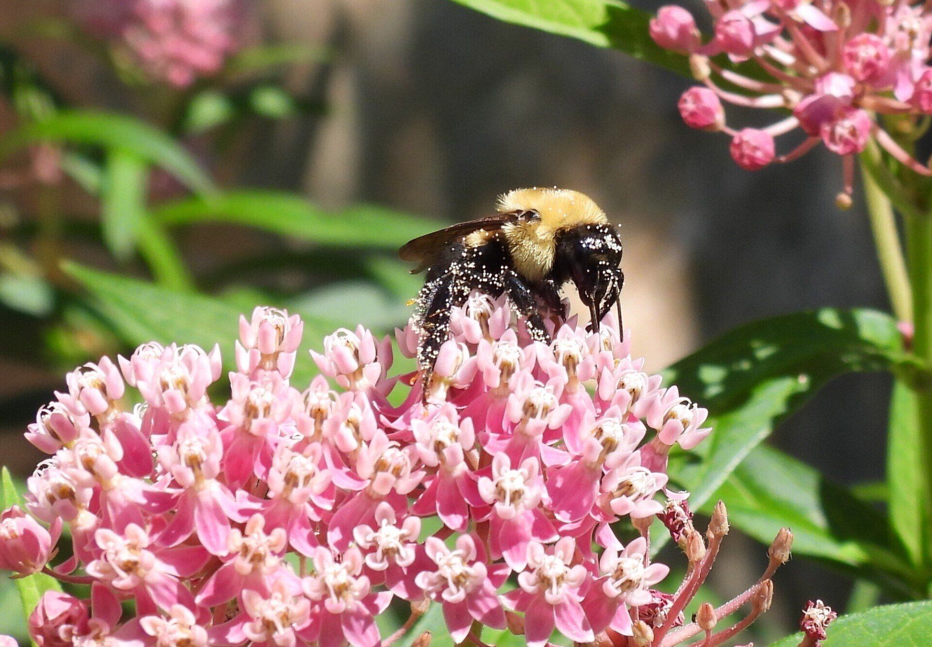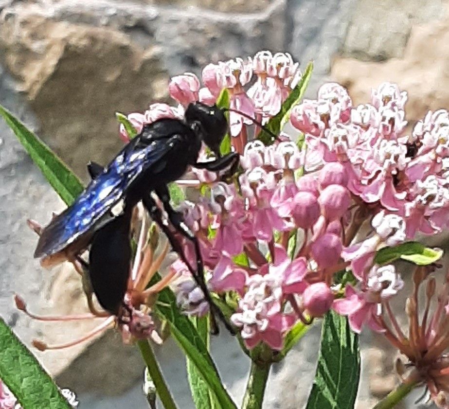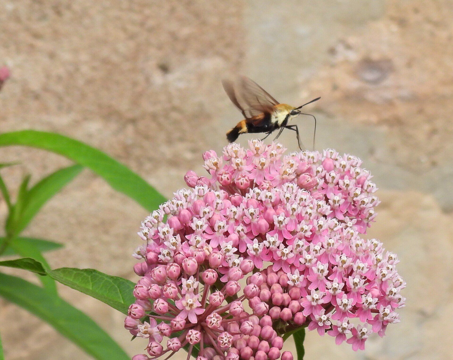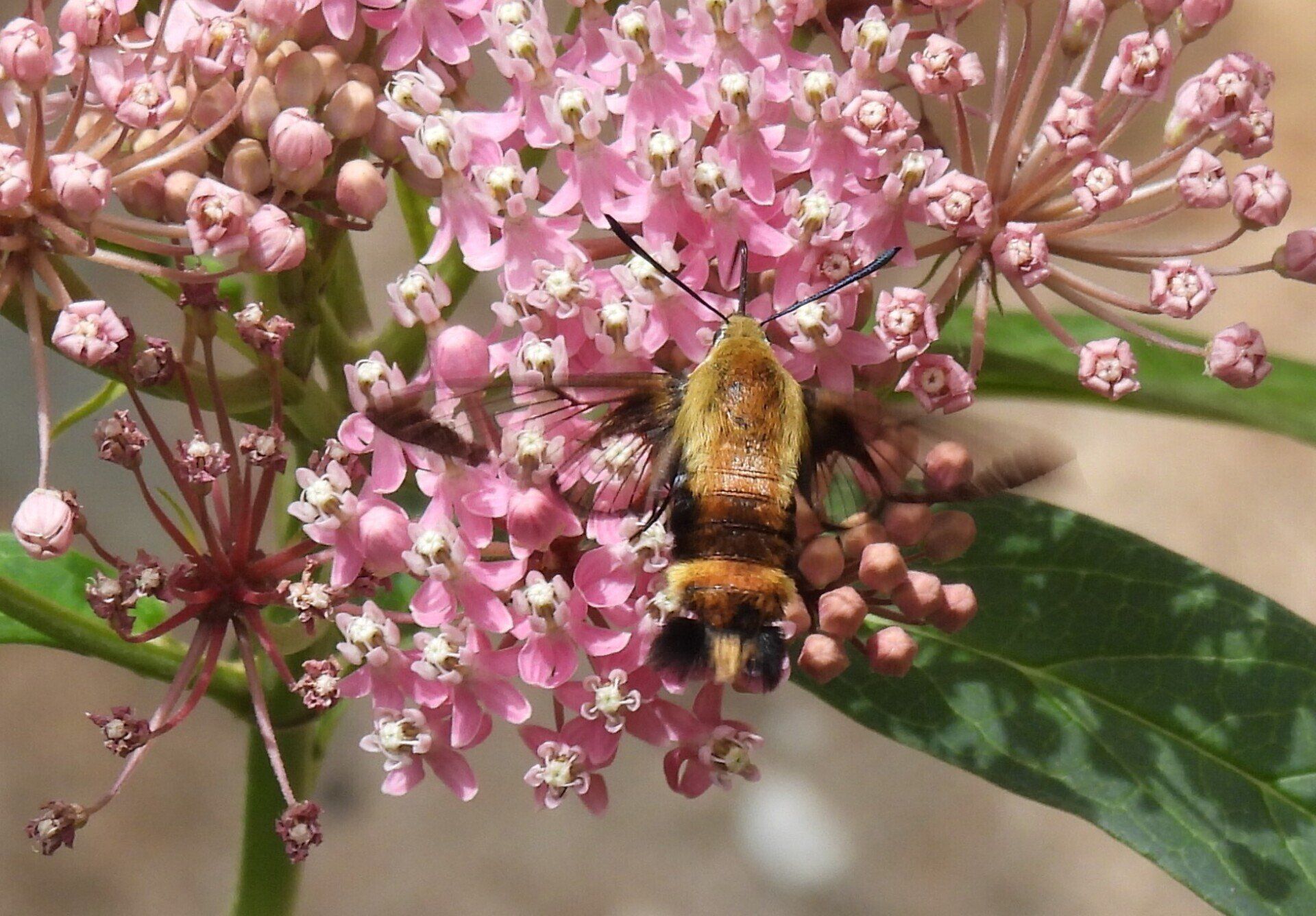 Hummingbird Clearwing Moth nectaring on Swamp Milkweed