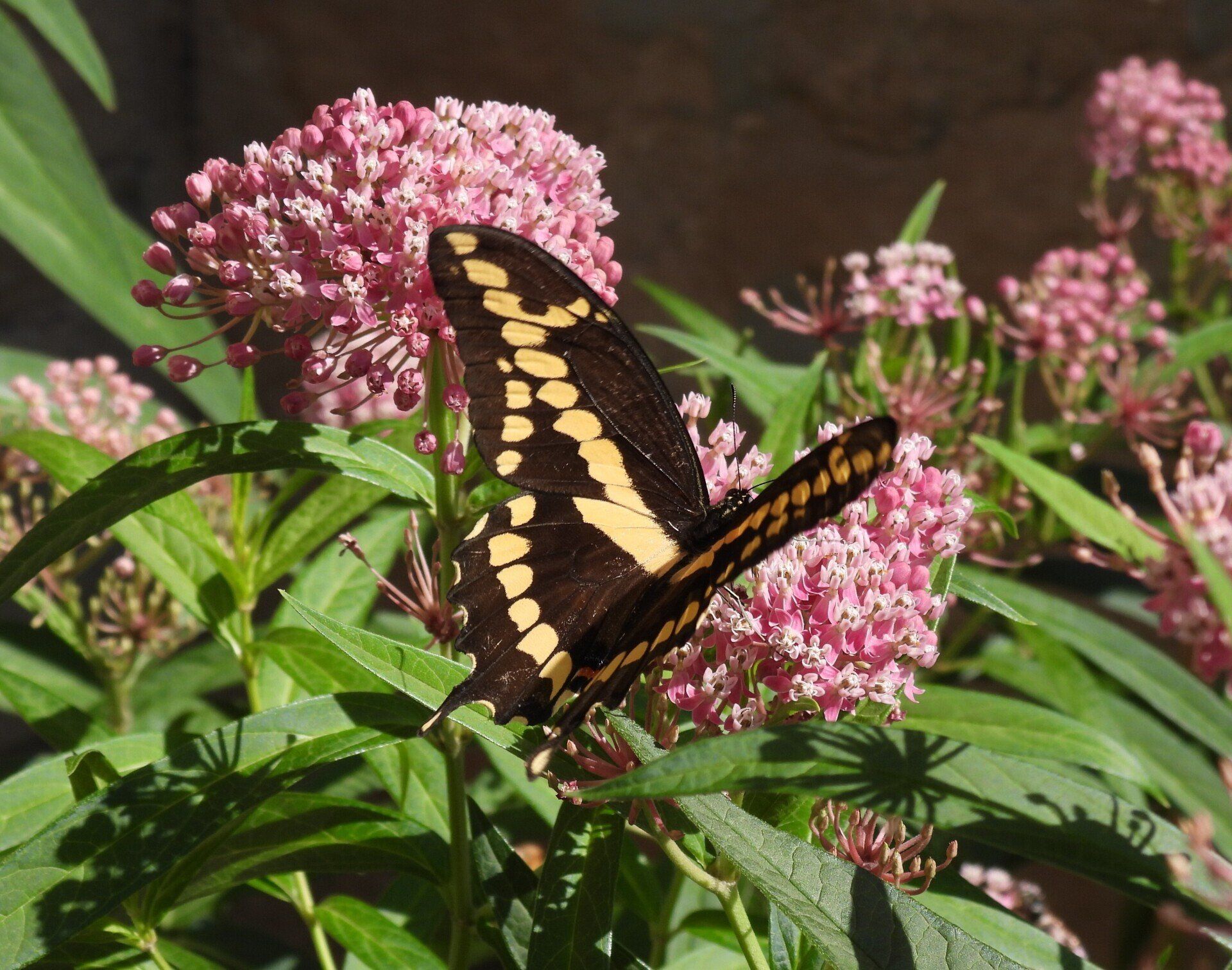 Giant Swallowtail Butterfly nectaring on Swamp Milkweed